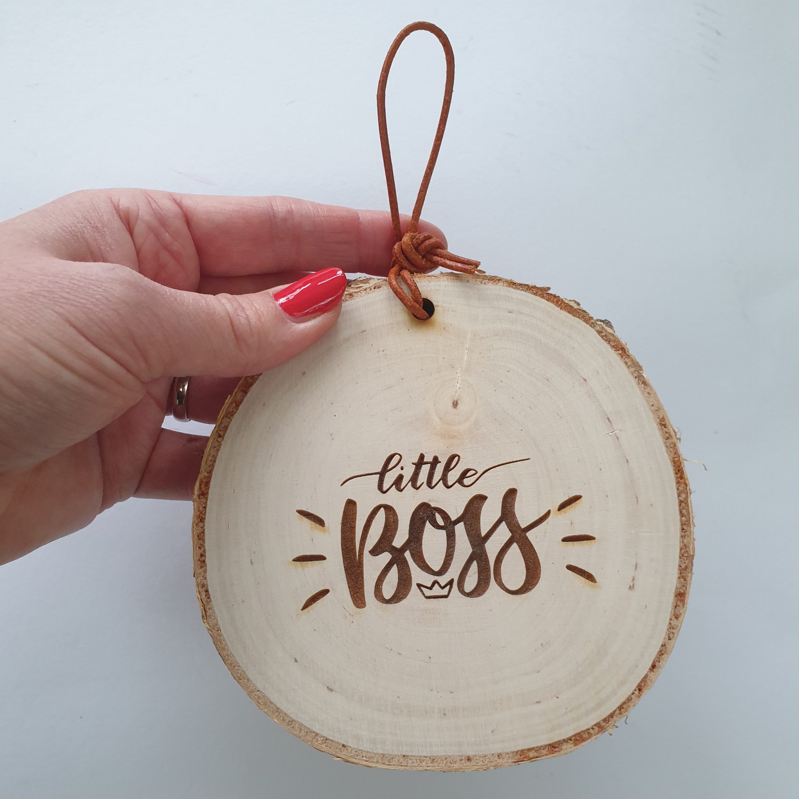 Deze houten schijf is 11.5 cm groot. Zoals afgebeeld. Erg leuk voor in de kinder(speel/slaap)kamer. Bevestiging zoals afgebeeld (gaatje of lus).